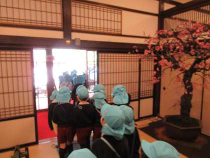 樹齢に驚くとともに、「かわいい!」「いいにおいする!」と、きれいに咲く梅の花を見ていました。