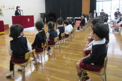 園長先生のお話をしっかりと聞き、ひとりひとり進級記念品をいただいている姿を見ていると、心も体も大きくなったなぁとしみじみ感じました。