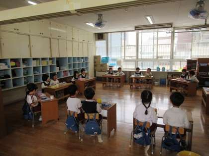 昨年までは、感染症対策のため、全員が一方向を向き、隣の友達との間に透明のカーテンを引いて黙って食べていましたが、今年度からは、それらが緩和されたこともあり、一定の距離を保ちつつも、みんなの顔を見ながらお弁当を食べています。
