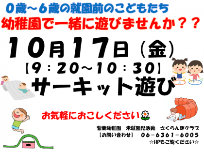 菅南幼稚園では、未就園児園庭開放(さくらんぼクラブ)を実施しています。
