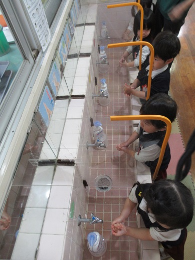 「石鹸のいい匂いする?」と尋ねると、自分の手を匂ってとても嬉しそうな笑顔の子どもたちでした。