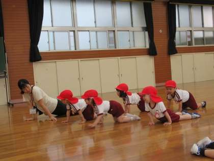 アオムシになってお散歩してみたり、サーキット遊びでジャンプしたりマットでゴロゴロ転がったりしました。