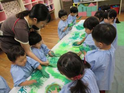 絵の具遊び、楽しいね!(3歳児)