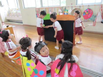 今日は、テントウムシのてんてんちゃんになった子どもたちが、「先生、おいでー!」といろいろな先生を呼んで、『テントウムシ劇場』を見せてくれました!