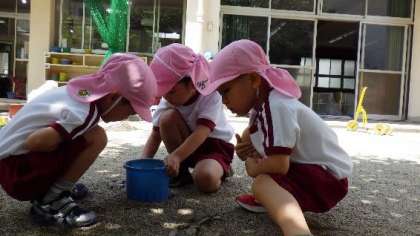 金曜日は大雨のためお外で遊ぶことができなかったので、気持ちのいい天気だった今日は、お外でもたっぷり遊びました。お部屋でもお外でも楽しく遊んで、大満足のもも組さんでした!