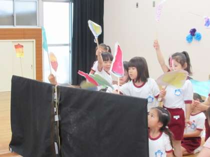 そら組さんも、お話に合わせてゆっくりペープサートを出したり、すばやく友達と交代したり、自信をもって演じている様子でした。