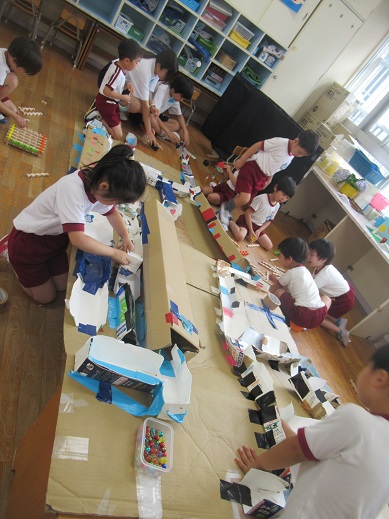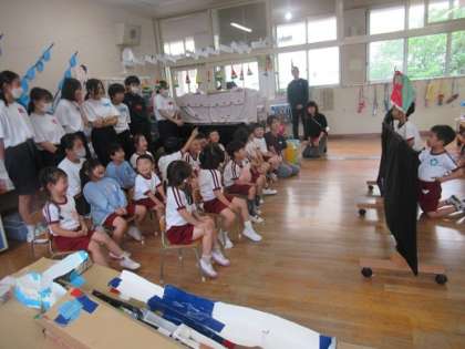 体を動かして遊んだり、そら組の子どもたちがつくっているビー玉転がしをしたり、『アオムシ劇場』を見せてくさん拍手をもらったり・・・・・一緒に過ごすのがとても楽しかったようです。