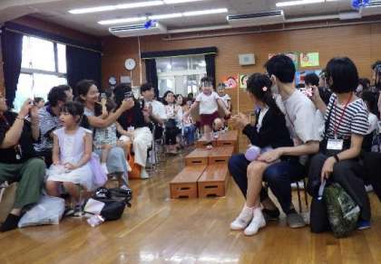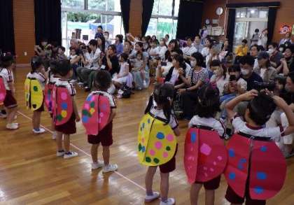 もも組は保護者の方と一緒に七夕飾りを作りました。保護者の方に手伝っていただき、とても美しい飾りがたくさんできていました。その後遊戯室では「てんてんちゃんパレード」をしました。子どもたちが工夫して飾りつけをしたおしゃれなてんてんちゃんの羽をつけて、ランウェイを颯爽と歩いていてとってもかわいかったです。♪てんとうむしの歌もきれいな声で歌っていました。来てくださった保護者の皆様、ありがとうございました!とても楽しい一日になりました。