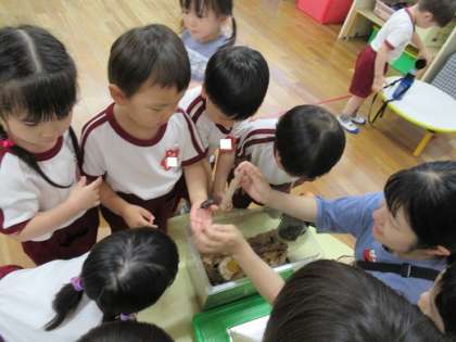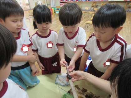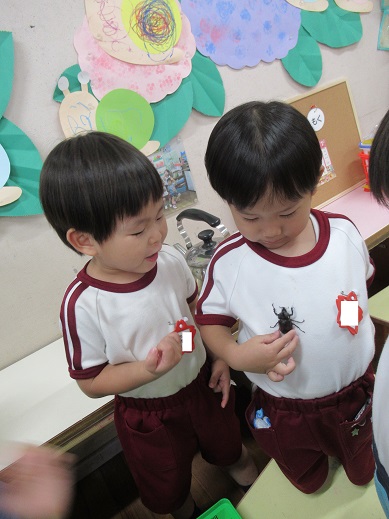 友達がお家から持ってきてくれたカブトムシに、子どもたちは興味津々!!