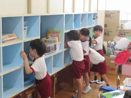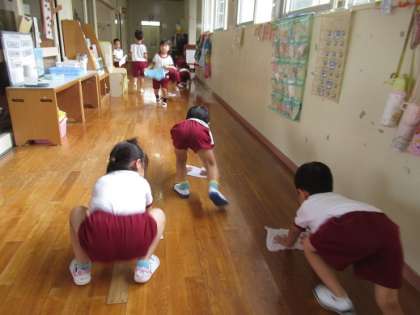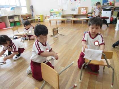 保育室や廊下、ロッカーや椅子など、1学期、みんなが過ごしてきた幼稚園の中を大掃除しました。