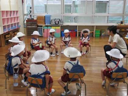 始業式では、園長先生のお話をしっかり聞くことができていました。