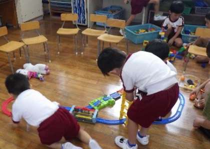 昨日は始業式でしたので、今日は朝から「〇〇して遊ぼう!」と楽しみにする姿がたくさん見られました。夏休みの間に先生が作ってくれたスカートをさっそく身に着けて「とってもかわいい!」と歓声を上げたり、友達と力を合わせて長く線路をつなげたり、とても楽しそうでした。1学期に種を植えた朝顔が花をつけ、種ができていることも発見していましたよ。2学期も元気いっぱい遊びましょうね!