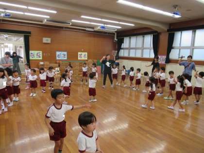 みんなで『夏休み ようちえんクイズ』をしたり、『ドンパン節』を踊って体を動かしたりもしました。