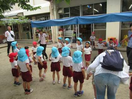 帰りには、10月に行う運動会の案内状をお渡しし、「運動会、遊びに来てね」とみんなでお見送りをしました。