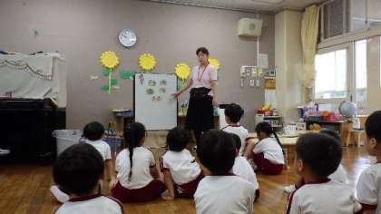 測定の後は養護教諭の先生からの保健指導です。規則正しい生活についての話を、子どもたちは興味津々で聞いていました。