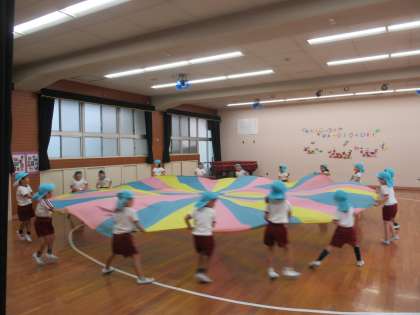 かけっこをしたり、玉入れをしたり、パラバルーンをしたり…子どもたちは、毎日少しずつ体を動かして遊ぶことを楽しんでいます。