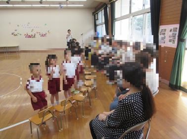 年長児がお茶をお出ししたり、肩たたきのふれあい遊びをしたり、歌を聞いていただいたり…。菅南幼稚園出身の大先輩もおられたので当時の幼稚園との違いも聞くことができました。参加してくださったおじいさんおばあさんがどの子どもとも楽しく遊んでくださったので、子どもたちはみんなとっても楽しそうでした。子どもたちにお話を聞いてみてくださいね!