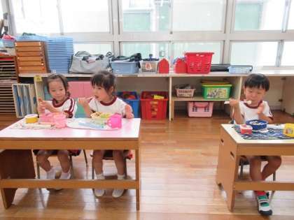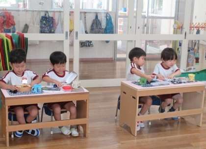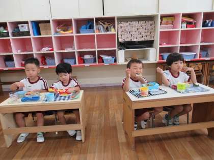 たくさん遊んだ後、子どもたちはお弁当の時間をとても楽しみにしています。