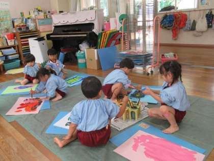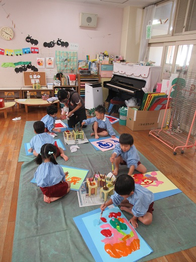 絵の具の感触を感じながら、のびのびと絵をかく姿が見られました。