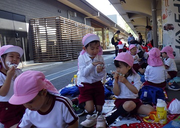 「おいしいね」と友達と顔を見合わせながら食べたり、「もう、食べたよ!」「あー、おいしかった!」と言いながら満足感いっぱいの子どもたちでした。。