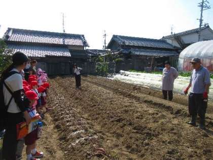 今日は子どもたちがずっと楽しみにしていた芋ほりに行きました。とってもいいお天気で汗ばむくらい暑かったです。