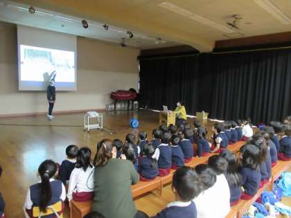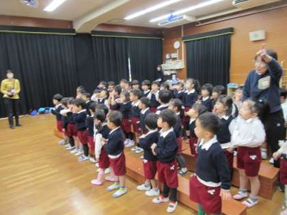 みんなで「かんなんようちえん、お誕生日おめでとう!」とお祝いの言葉も伝えました。