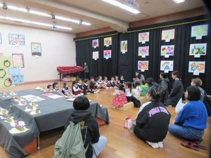 冬の飾りを一緒につくったり、作品展の様子を見ていただいたり、この時期ならではの幼稚園の様子を見ていただけたのではないかと思います。