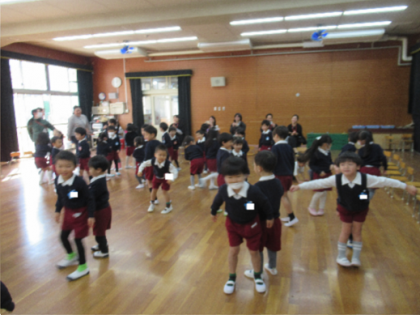 最後は、2人組になってみんなで『サンタでサンバ』のダンスをしました。