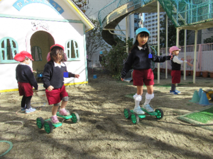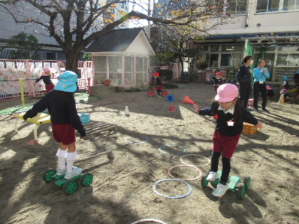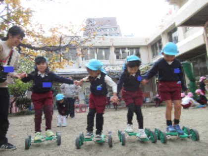 幼稚園に、新しい遊具(ペダルローラー)が増えました!