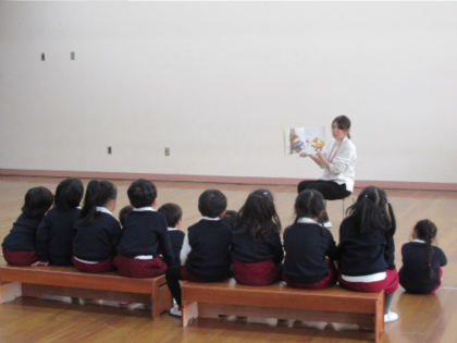 絵本ボランティアをしてくださっている在園児の保護者の方が、子どもたちに絵本の読み聞かせをしてくださいました。