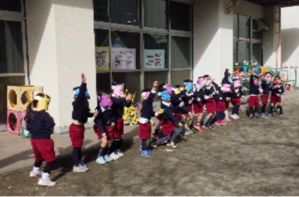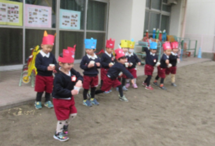 「鬼は〜外!」「福は〜内!!」と、寒さにも病気にも鬼にも負けない、元気な声が園庭に響いていました。