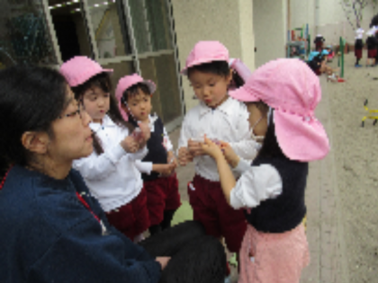 お花が咲いたら…(4歳児) 公開日 2024/02/15 更新日 2024/02/15 記事 今日もお外で元気いっぱい遊んでいた子どもたち。 園庭のパンジーがたくさん咲いているのを見て、これまでの経験から「お水(色水)したい!」との声があがりました。 きれいに咲いている花を大切にしつつ、しおれてしまった花びらを探し、袋に入れて少しの水といっしょにモミモミ・・・。 「先生、見て!」と色が出てくるのをとても嬉しそうに見せてくれました。 いいね(0)