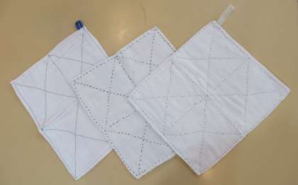 地域の方から、とても丁寧に手縫いされた布巾を、たくさんいただきました。