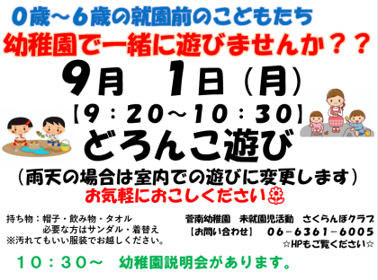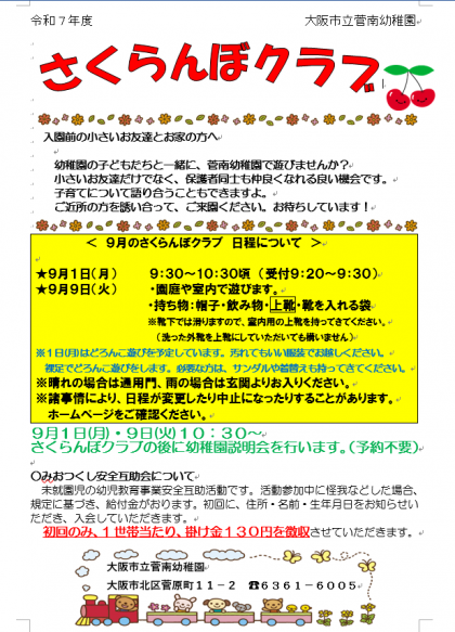 さくらんぼクラブ・幼稚園説明会のお知らせ(9月)