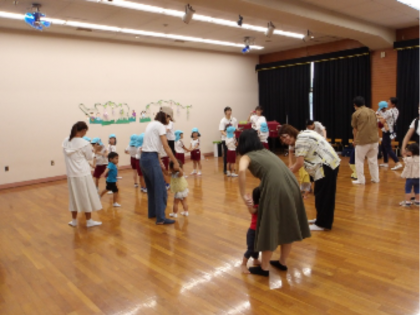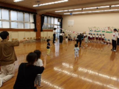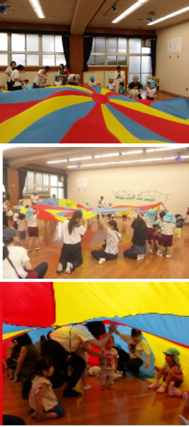 お家の人と一緒にダンスをしたり、かけっこをしたり、そら組さんのパラバルーンに参加したり…。