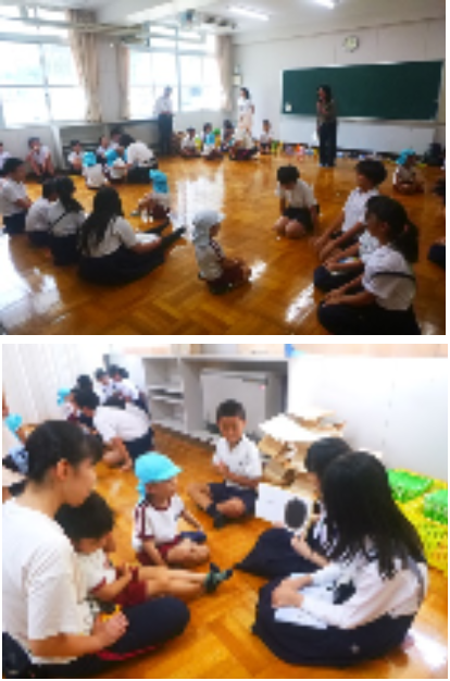 小学校交流(そら組) 公開日 2025/09/25 更新日 2025/09/25 記事 今日は、西天満小学校の5年生が絵本の読み聞かせをしてくれました。 グループに分かれ、子どもたちの表情を見ながらゆっくり優しく読み聞かせてくれ、そら組の子どもたちも絵本に夢中になっていました。 少しの時間でしたが、仲良くなって“タッチ♪”をしたり、一緒に手遊びをしたりもして、5年生もそら組さんも、笑顔でとても楽しんでいました。 いいね(0)
