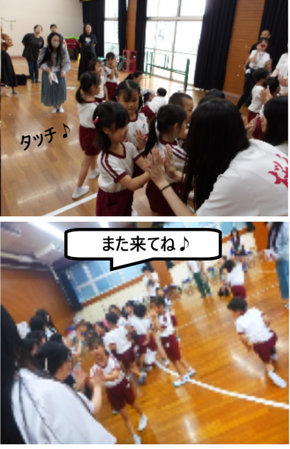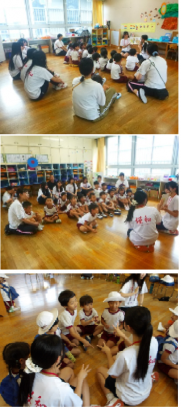 桜和高校職業体験(そら組) 公開日 2025/10/01 更新日 2025/10/01 記事 9月30日(火) 桜和高校の学生さんたちが2回目の職業体験に来られました。 そら組の子どもたちと一緒にゲームをしたり、絵本の読み聞かせをしてくれたりしました。 「一緒に遊んで楽しかった!」「かわいい絵本を読んでくれて嬉しかった♪」と子どもたち。 またお姉さん先生たちと遊べるのを楽しみにしているようです。 いいね(0)