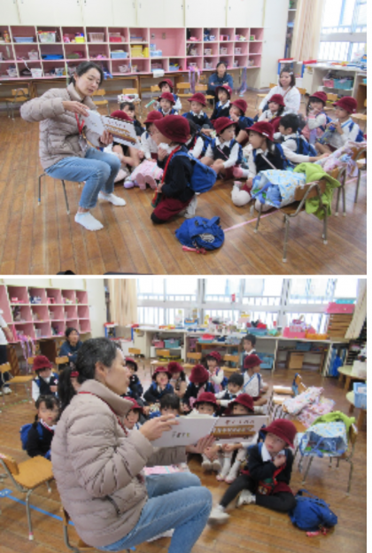 絵本大好き♪ 公開日 2025/11/14 更新日 2025/11/14 記事 今日は、絵本ボランティアさんが、絵本の読み聞かせをしてくださいました。 『ごきげんのわるいコックさん』(3歳児)、『もぐらバス』(4歳児)、『どんぐりのあかちゃん』(5歳児)など、各学年に合わせた紙芝居や絵本を選んで読んでくださいました。 “今日はどんな絵本かな♪”と毎回楽しみにしている子どもたち。 大好きな絵本がまたひとつ増えました(^^) いいね(0)