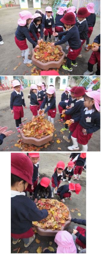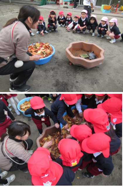 数日前から「かまちゃんのお布団♪」と落ち葉を集めていた子どもたち。