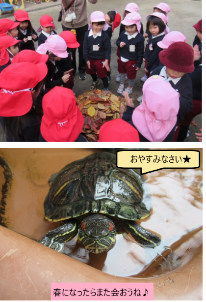 今日は、みんなで「おやすみなさ〜い」と、葉っぱのお布団をかけてあげました。