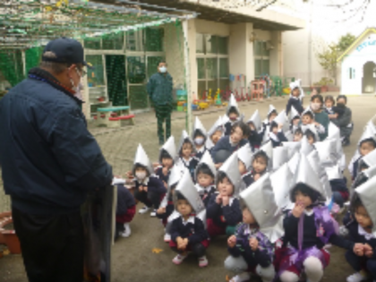 避難訓練をしました 公開日 2025/12/12 更新日 2025/12/12 記事 今日は火事を想定し、避難訓練をしました。 子どもたちには事前に知らせずに行った避難訓練でしたが、非常ベルの音が鳴ると先生の所へ集まり、スムーズに避難することができました。 避難時の約束事【押さない・走らない・しゃべらない・戻らない】も再確認することができました。 いいね(0)