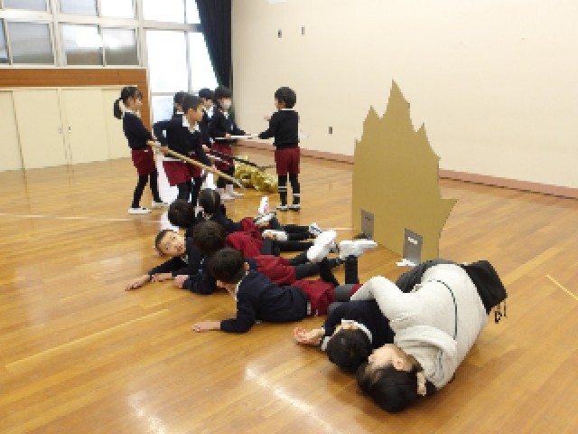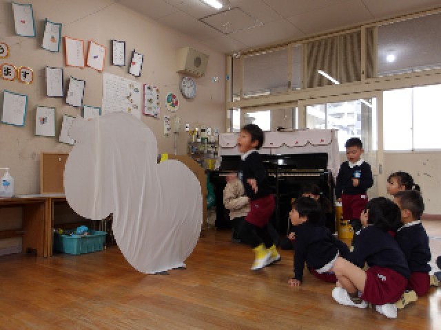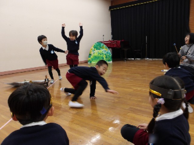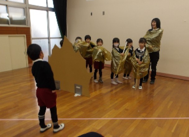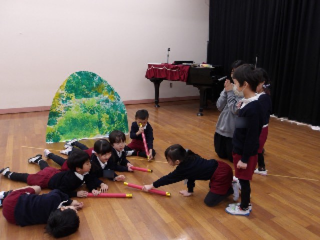 「そんごくう、しよう♪」(そら組) 公開日 2026/01/21 更新日 2026/01/21 記事 そら組さんは、毎日『そんごくう』のお話の世界で遊んでいます。お話を何度も読みながら、そんごくうの気持ちになって表現遊びをしたり、登場人物になりきってやりとりをしたりしています。友達と一緒に考えたり、なりきって遊んだりするのがとても楽しいそら組さんです。 +4 いいね(5)
