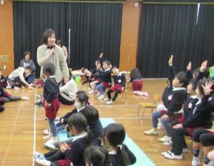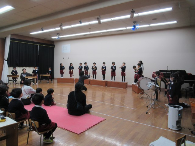 最後はお互い、見合いっこしてどうだったかを伝えました。あか組、もも組の劇遊びは「かわいかった!」そら組の合奏は「かっこよかった!!」そうです。ほかのクラスのお友達からのうれしい言葉ももらって、みんな嬉しそうでした。明日も見合いっこをする予定です。お楽しみにー!