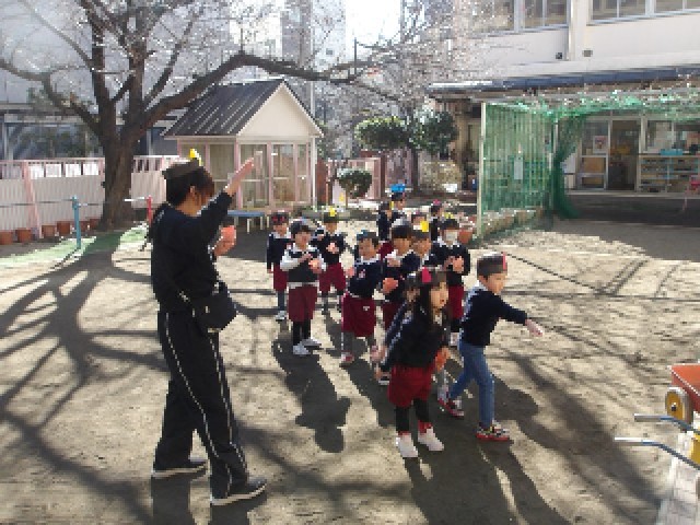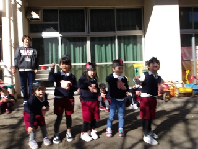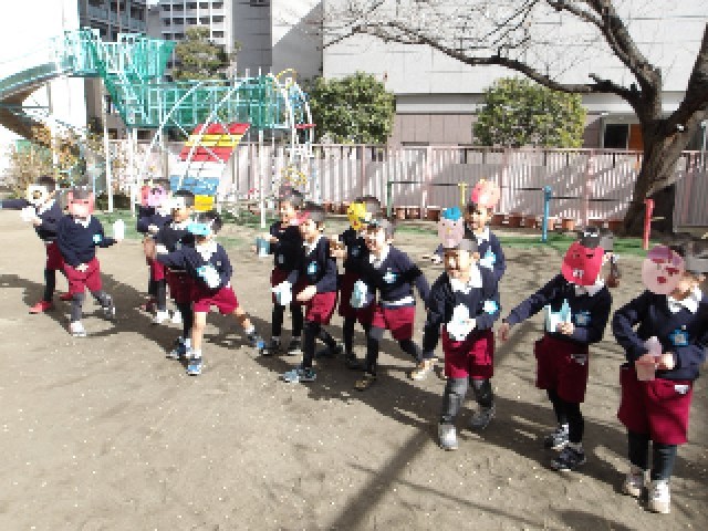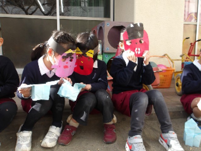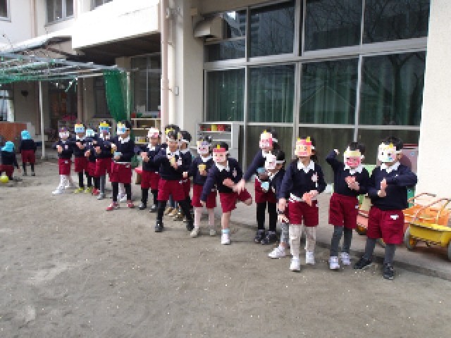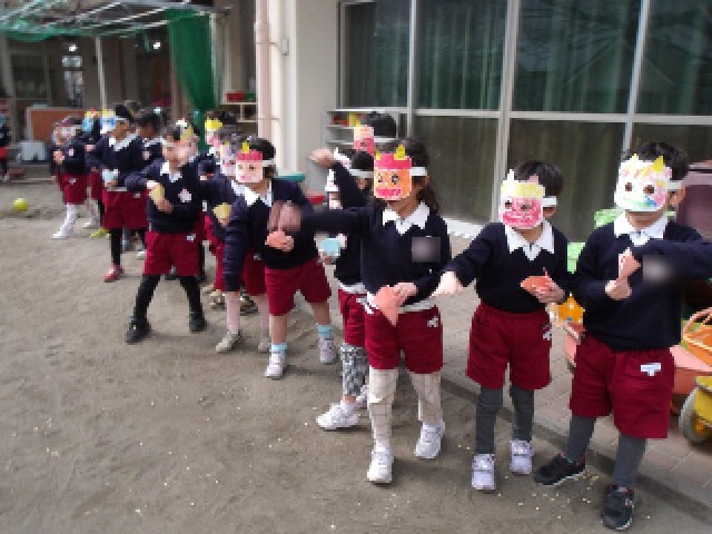 節分遊び 公開日 2026/02/03 更新日 2026/02/03 記事 今日は2月3日。節分の日です。子どもたちは自分でつくった鬼面をつけて、先生や友達と一緒に豆まきをしました。「おには~そと!!」「ふくは~うち!!」と、園庭に元気な声が響いていました。今年も1年、子どもたちが元気に過ごせますように(^^) +4 いいね(1)