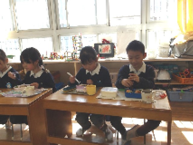 「たまご焼きいっしょ♪」「見て!大好きなカツサンドにしてもらった♪」など、友達や先生との会話が絶えず、とっても楽しい時間でした。