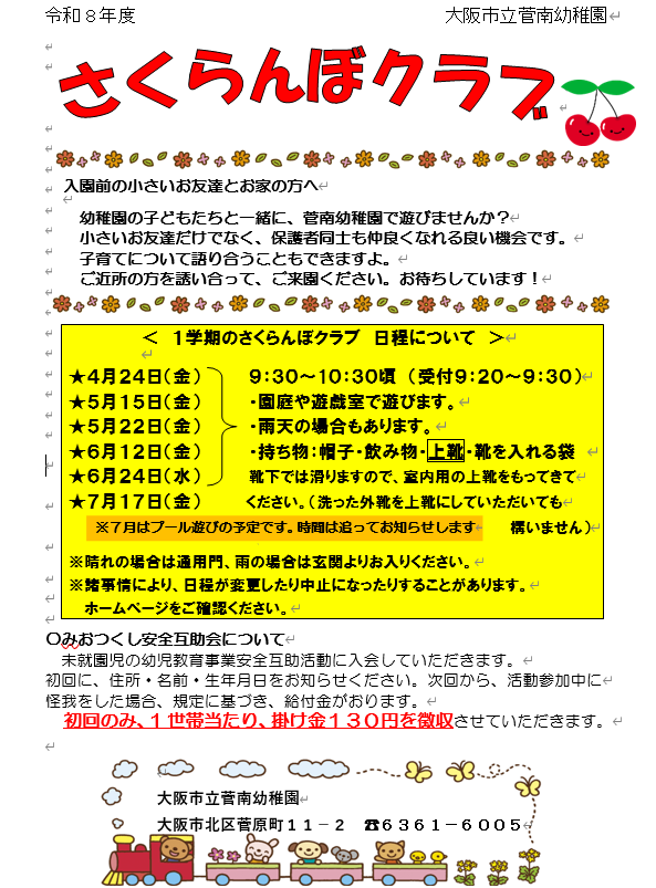 さくらんぼクラブ お知らせ