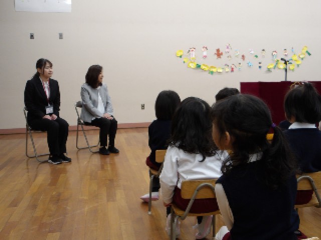 始業式では、お部屋でつけてもらったピカピカの名札を保護者の方にみてもらい、ひとつ大きい組さんになったことをとても喜んでいました。
