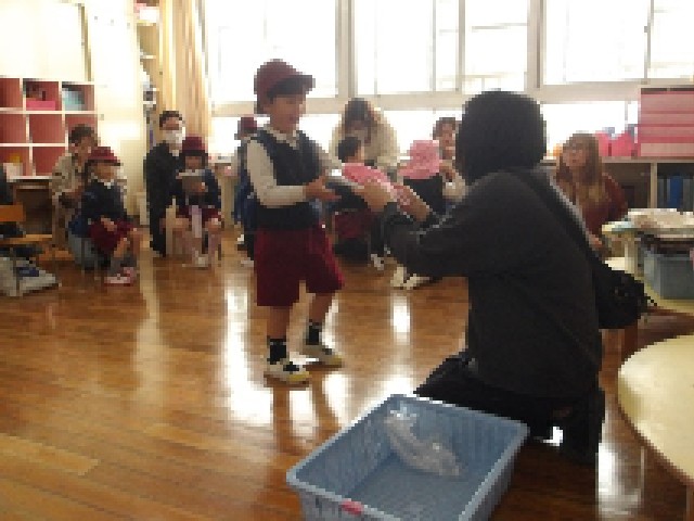 お部屋では、新しいおたより帳を友達と一緒に眺めたり、新しいクラス帽子をもらって「本当にありがとう!!」とにこにこ笑顔でさっそくかぶってみたりして、“新しい✨”と“嬉しい🎵”がいっぱいの“1学期1日目”になりました(^^)