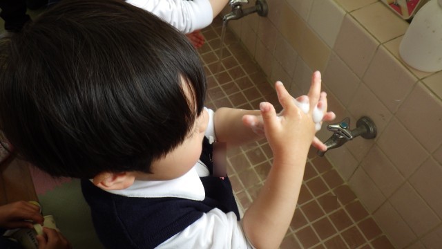 もも組保健指導(4歳児) 公開日 2026/04/16 更新日 2026/04/15 記事 今日はもも組が保健指導をうけました!幼稚園にバイキンからお手紙が届き、「みんなをねらっているゾ」と書いてある!と先生が読み上げていると、みんなちょっと不安そうな顔…でも大丈夫!正しい手の洗い方を教えていただきました!まずは先生の話を聞きながら、保育室で手洗い、うがいの練習しました。その後実際に手洗い、うがいをしました。みんなとっても丁寧にしていましたよ!これからも続けていきたいと思います! +1 いいね(0)