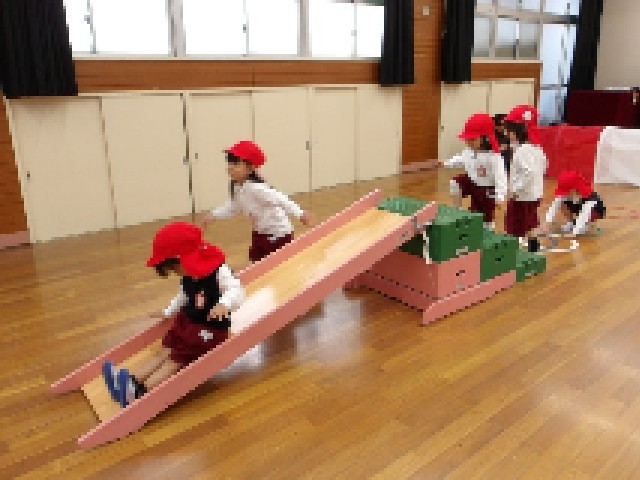 お遊戯室公園♪ 公開日 2026/04/16 更新日 2026/04/16 記事 あか組さんは午前中に、もも組さん・そら組さんは午後に、遊戯室で遊びました。滑り台やハシゴ、トンネルなどがある“お遊戯室公園”子どもたちは、友達や先生と一緒に遊んだり、しっかり体を動かしたりすることを楽しんでいました。 +7 いいね(0)